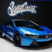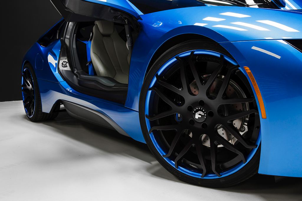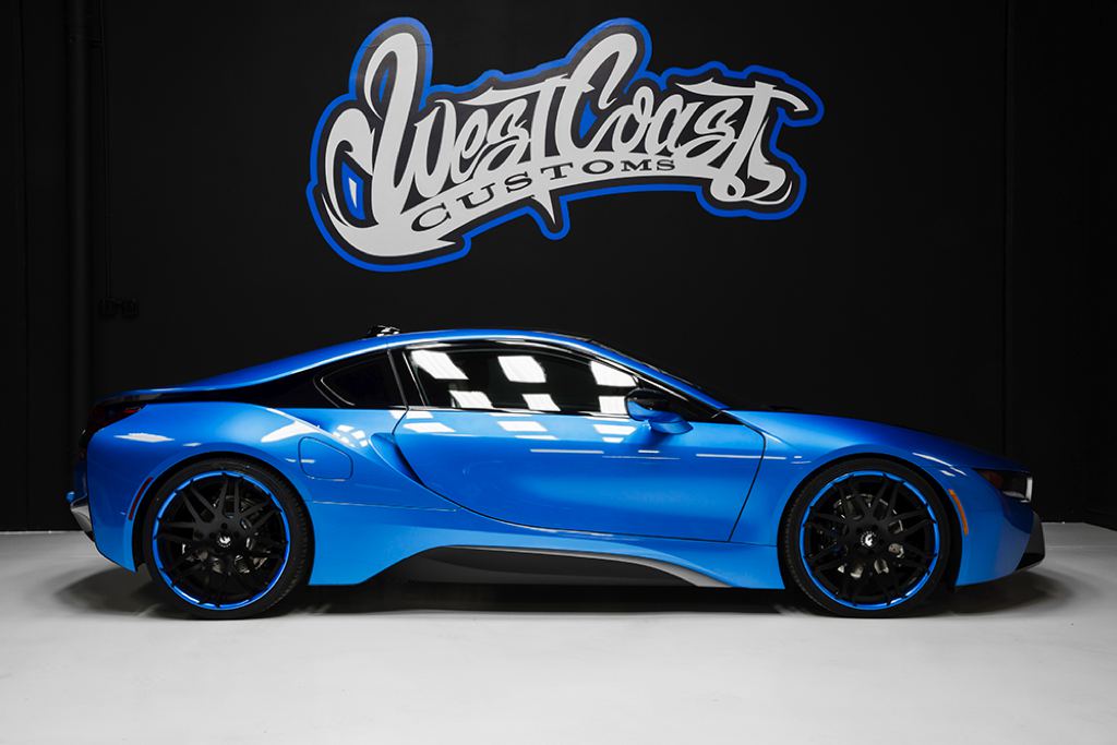 The Forgiato rims in question here are 22-inch Capalavoro model finished in matte black with i8 blue outer lips. The paint work on the wheels is perfect for this i8 as it blends in beautifully. Ryan is killing two birds with this thing, rolling in style with his Forgiatos on, while putting on an environmentally friendly face. In the meantime his technicians down at West Coast Customs will continue building one-off V8s and V12s for the celebrity customers.