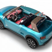 Being a roofless open-top vehicle (it does actually have an inflatable roof that doubles as a tent), Citroen Cactus M Concept features interior materials inspired by open-air activities. The seats are upholstered with waterproof neoprene waterproof fabric. The entire cabin, in fact, can be hosed down. There are some fairly weird solutions here as well, like how the passengers access the seats in row two by climbing over the sides of the car, using the built in steps on either side at the rear.