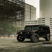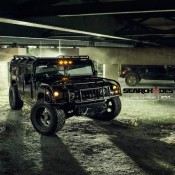 EVS S&D H1 rolls on a set of massive ADV05C Truck Spec HD.1 CS wheels in Polished Smoked, wrapped with chunky off-road tires. It is powered by a GM Duramax diesel engine. The wheels make this vehicle ready for sale in California.