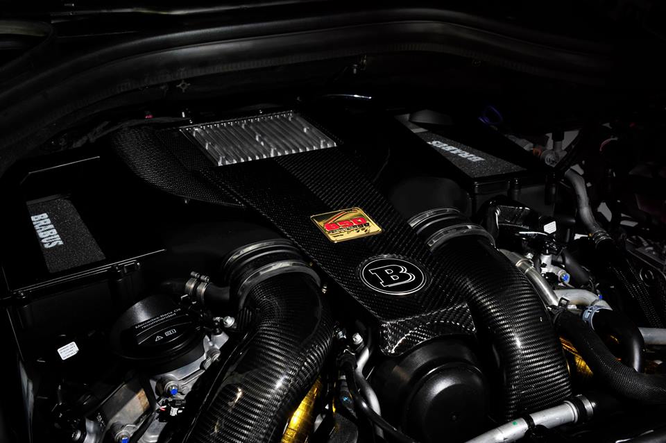 That is enough power to propel this two and a half ton monster from 0 to 100 km/h in 3.2 seconds and on to a top speed of 320. To keep the car in check at the kind of speed Brabus has uprated the suspension and lowered it a bit, fitted larger brake discs with high performance calipers, and installed large monoblock wheels wrapped with high performance tires.