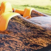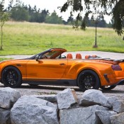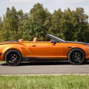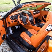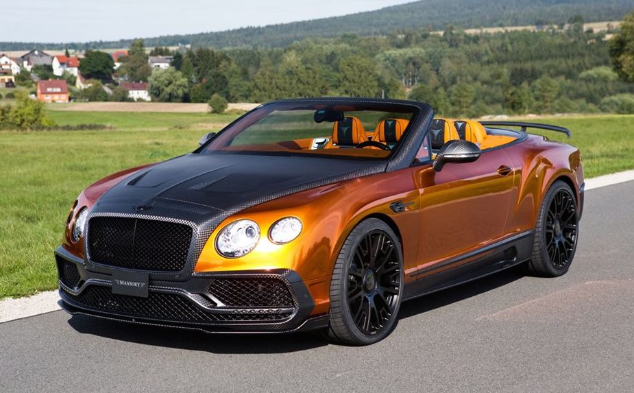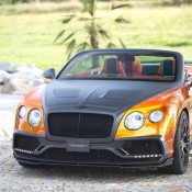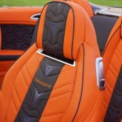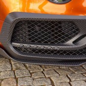 The extremely orange Mansory Bentley Continental GTC features a rich carbon fiber body kit which, in true Mansory fashion, is a bit over done. The front bumper, the vented bonnet, pillars, side skirts, and all the aero parts are exposed carbon fiber treated only to a clear coat. A set of 10 x 22 inch wheels with Vredestein ULTRAC VORTI R tires complete the look.