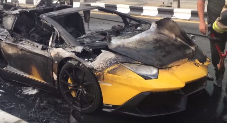 In Dubai: Lamborghini Aventador SV Burns to the Ground