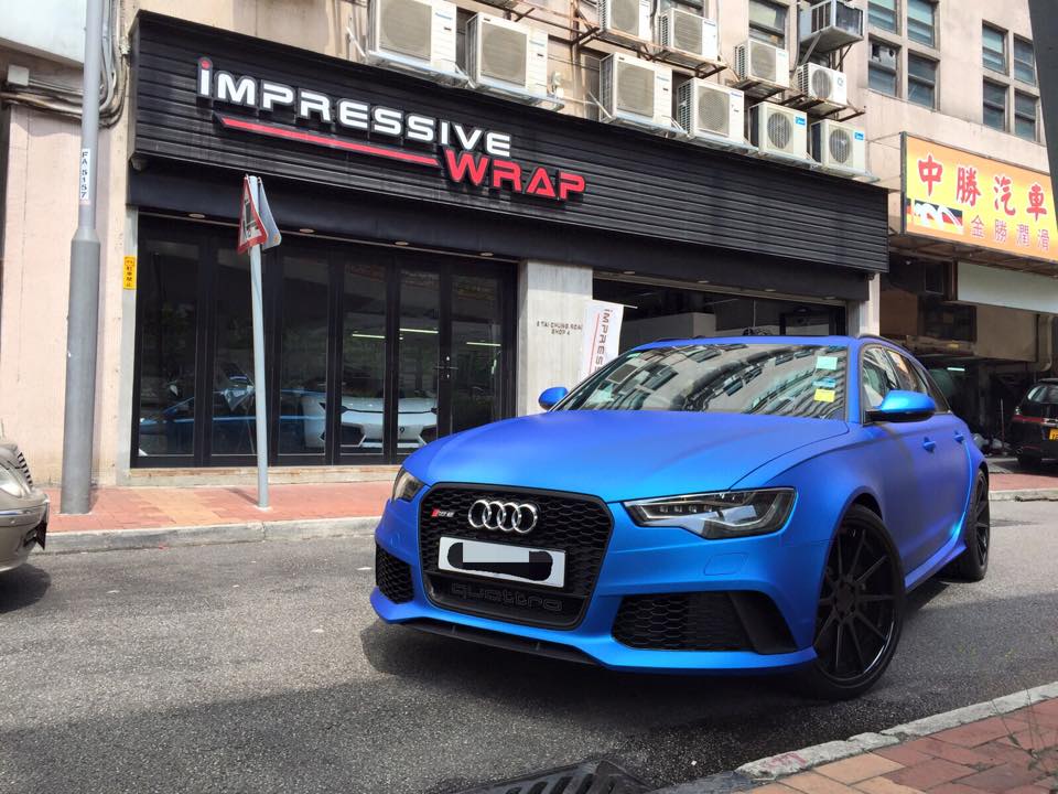The Hong Kong branch if Impressive Wrap has come with another special wrap, this time a distinctive Matte Blue Aluminum color for an Audi RS6 Avant. This frozen shade of blue suits the big Audi really well and sets off its fantastic design details.
