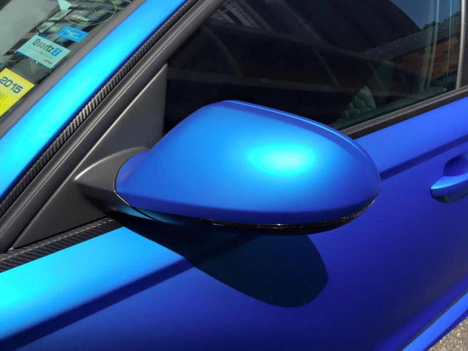 What impresses most about Impressive Wrap’s Matte Blue Audi RS6 is the attention to details. Sure, the contrast between the body color and the matte black wheels is pretty awesome. But they have gone the extra mile and garnished the car with a few little touches to make it look even more exquisite. The carbon-look window surrounds and the black roof spoiler are among these touches.