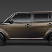 If we cut to the chase, Scion xB 686 Parklan Edition features on the outside Cocoa Bean Metallic paint accented with red lines in the front, rear and on the side mirrors, plus gloss black 16-inch alloy wheels.