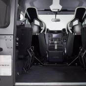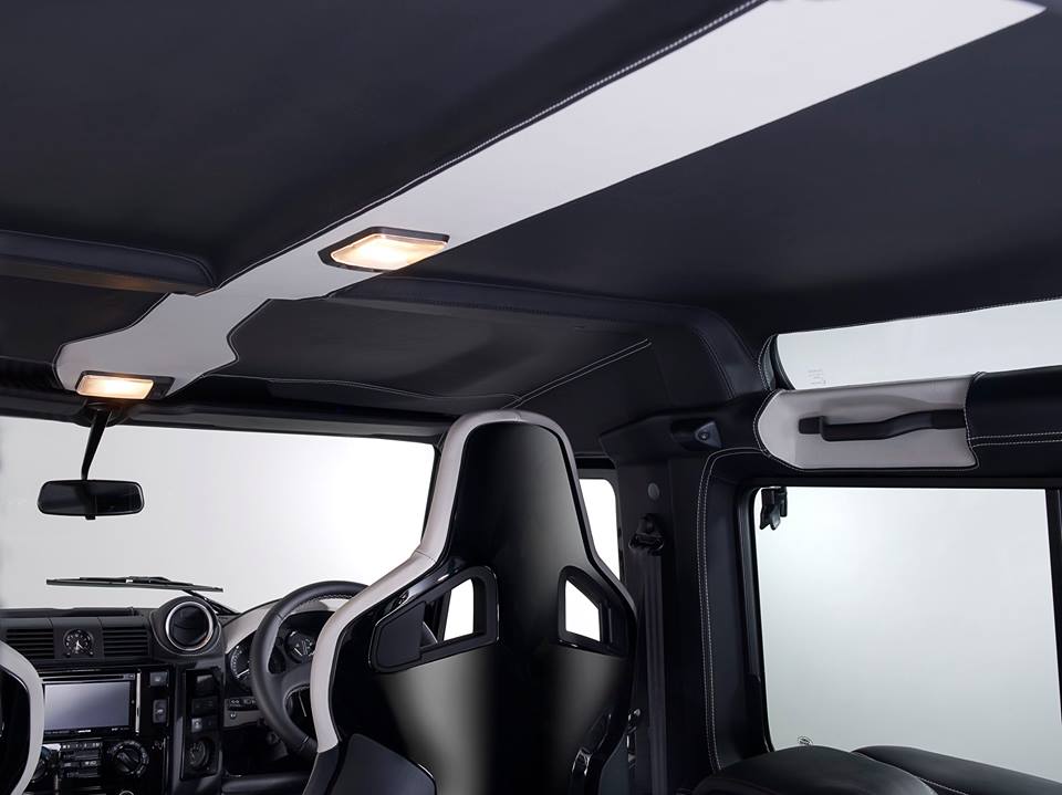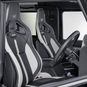 Inside the cabin Overfinch Land Rover Defender 40th Anniversary benefits from a healthy amount of leather garnished with contrast stitching. You will find it on the dashboard, steering wheel, headlining and the seats. There is also bespoke carpets, sport aluminum pedals, and carbon-backed bucket seats for the front row with ’40’ logos embroidered on the headrests.