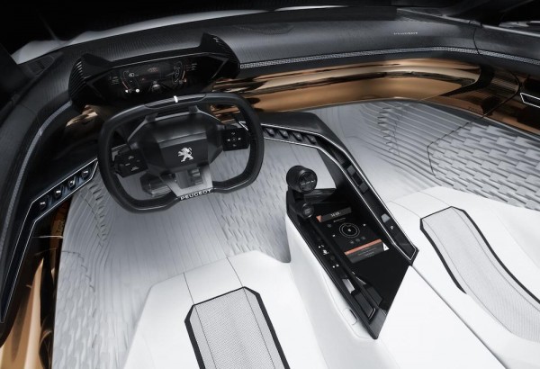 If you are not familiar with Peugeot i-Cockpit you just need look at one of their new models like the 208. A small steering wheel, unique instruments, heads-up display, and minimalistic dashboard are among the highlights of this design. Peugeot Fractal adds an auditory aspect to that, boasting a sound signature created by sound designer Amon Tobin.