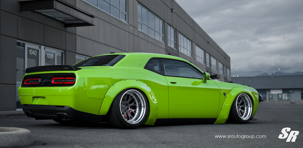 Canadian tuner SR Auto Group has been on in many Liberty Walk wide body projects, but the one they offer for the Dodge Challenger Hellcat seems to be the new most popular LB treatment. This extremely green Liberty Walk Challenger is the latest to come out of their workshops.