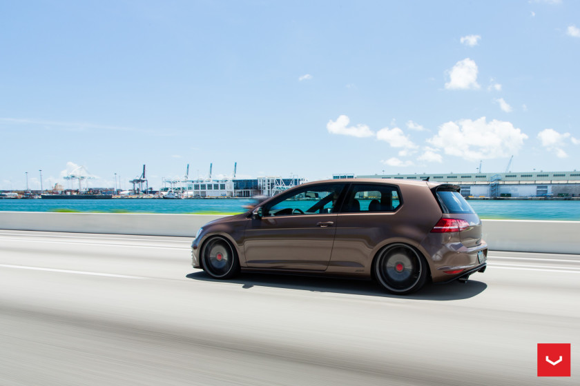 High-end wheel makers like Vossen often tend to work on nothing but exotic sports and super cars. But every once in a while they get busy with a more down to earth car and lift it up to a whole new level. This lovely Toffee Brown Golf GTI is a case in point.