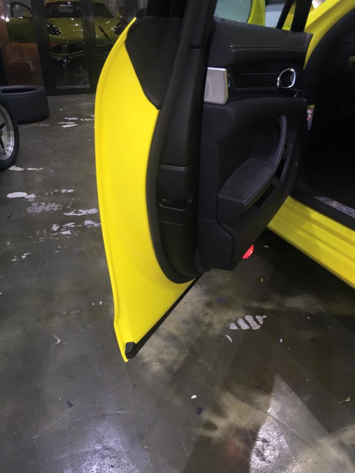 Unlike that blue one, this yellow example is not an Exclusive Series model with the unique paint job from the factory. The color is actually a wrap, and a very good one. Impressive Wrap has gone to the trouble of wrapping the door handles and even the jambs, so it would look like a legit paint job. Now that’s high quality work.