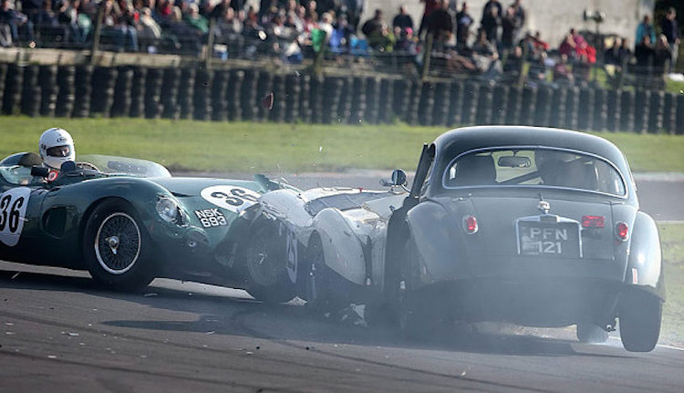 The ‘Supercars of the 1950s’ historic race was part of the Autumn Classic event at Castle Combe, one of the few events were vintage racing cars can be brought out of solitary confinement and raced again cars of their own era. The thing is, when several hundred million pounds worth of vintage race cars are let loose on the race track, incidents like this are inevitable.