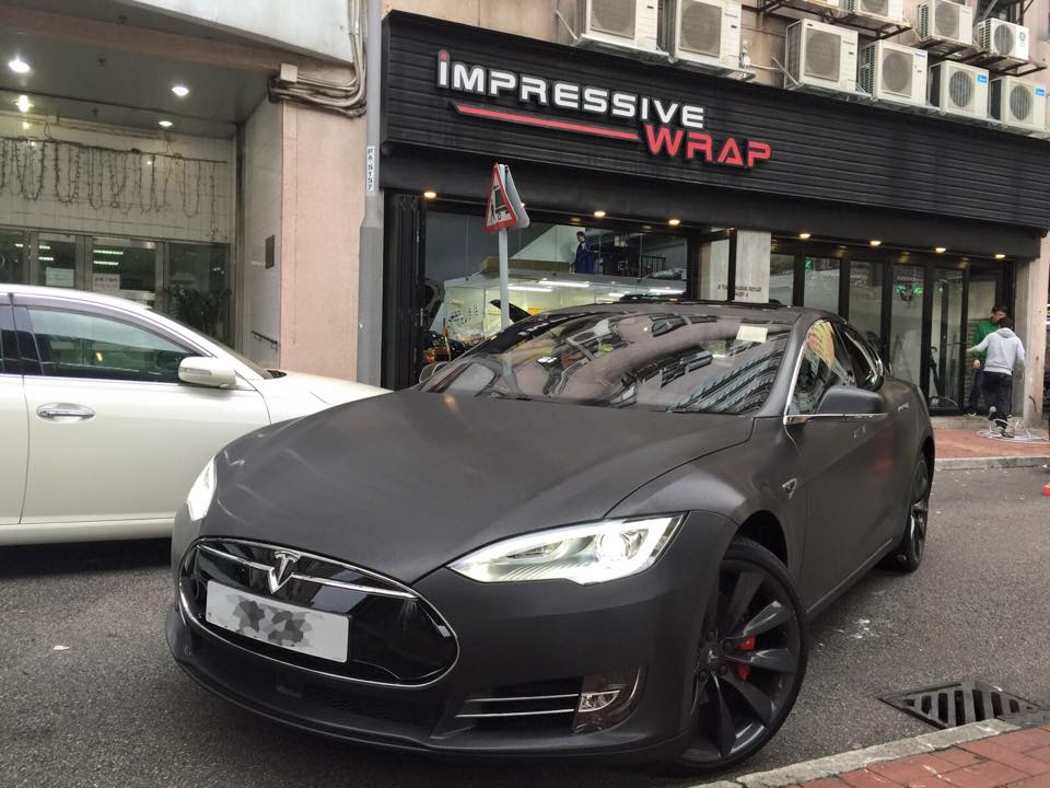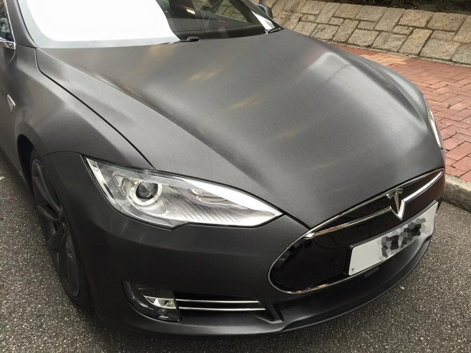 This velvety looking Tesla Model S P85D is one of the latest projects of Impressive Wrap Hong Kong and they have come up with a pretty special color for it. The textured look is the result of using a unique Black Brushed vinyl wrap and it looks rather amazing.
