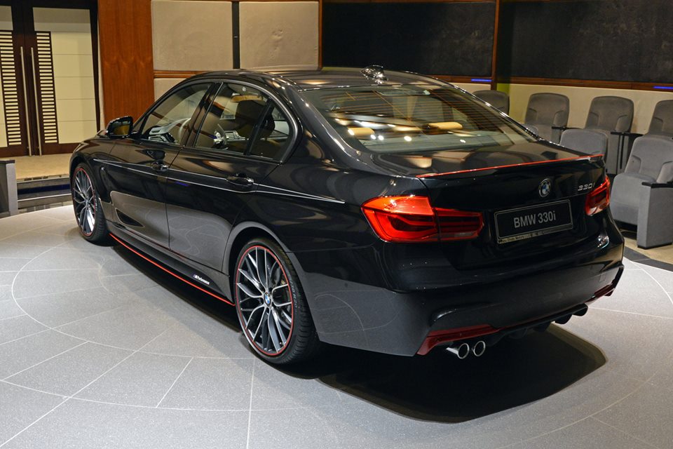 The boys from BMW Abu Dhabi are back with another very special model on display at their showroom. This time they want to show off a uniquely specced BMW 330i M-Performance in black, garnished with red accents, and boasting a full host of accessories.