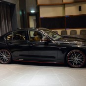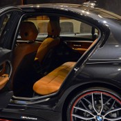 The most prominent feature of the custom sports sedan is the M-Performance aero kit it is rocking, consisting of front bumper extension, carbon fiber mirror caps and side skirts with M Performance logo, rear diffuser with integrated tailpipes, and a trunk lid spoiler.