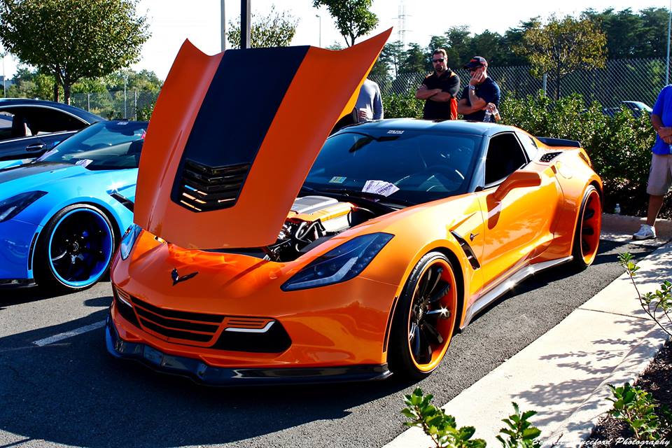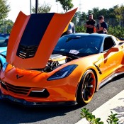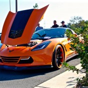 During a super car event at Lamborghini Washington a pair of heavily customized Wide Body Corvette C7 Stingrays turned up, stealing the show with their vibrant colors and, well, girth. You know this kit as Forgiato wide body treatment.