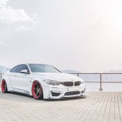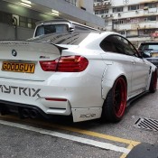 Reinart’s Liberty Walk BMW M4 is equipped with a complete Armytrix F1 Valvetronic Exhaust system which as we know from before gives the German coupe a sonorous soundtrack. This and the Airrex air suspension system are the highlights of mechanical modifications on this car, though the suspension system was a necessity since without it the LB kit would not work at all.