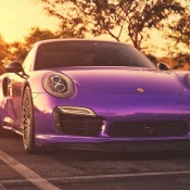 Looks like somebody was jealous of the new Porsche GT3 RS and its cool Ultraviolet paint work. The owner of this Porsche 991 Turbo S has had his car wrapped in a similar color and, as an extra twist, fitted with a set of Vintage HRE wheels. The end result is a unique hugely attractive supercar.