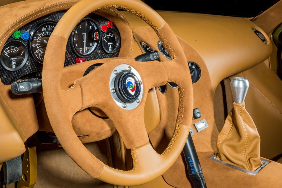 So let’s check out the specs of this good-as-new Panoz Esperante GTR-1. It is powered by a 6.0 liter Ford-based V8 engine pumping out 600-plus horsepower and 500 lb ft of torque, mated to a six-speed ZF transaxle transmission (located on the rear axle). The car weighs an incredibly light 1,980 lbs (898 kg) and relies on Brembo brakes all around for stopping power.