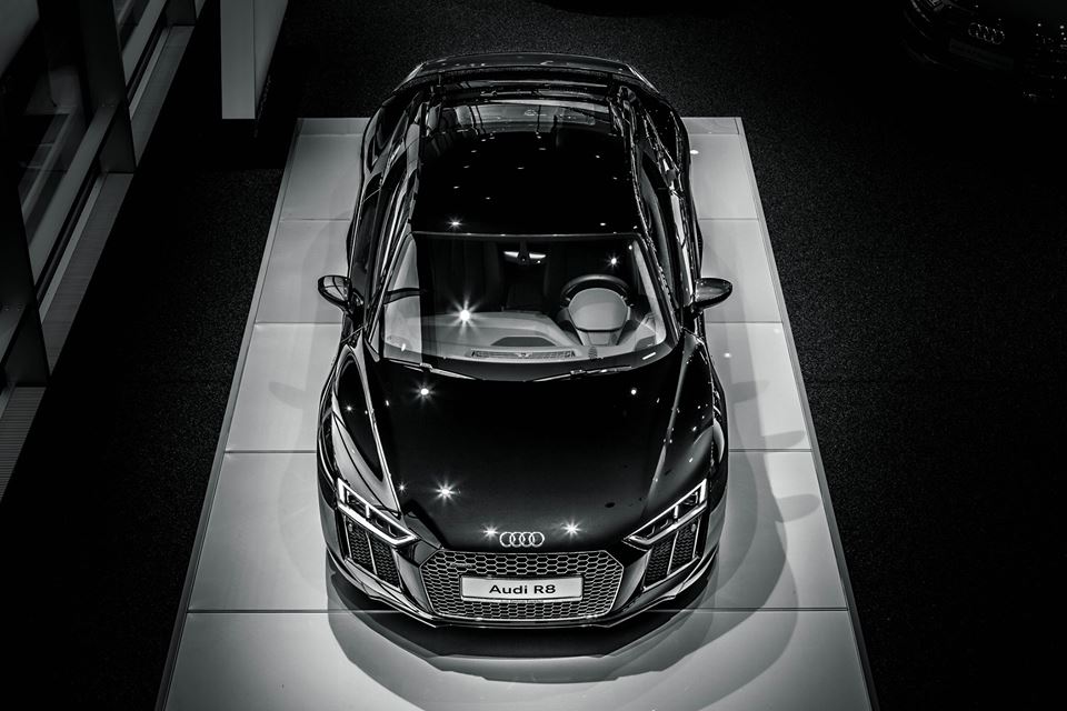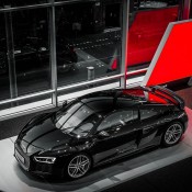 Audi Zentrum Frankfurt has on display these days an aggressive yet attractive Audi R8 V10 Plus, the new one. The car is finished in the same shade of black we showed you a while ago in real-life photos. This time though, we have some fancy, and admittedly edited, showroom photos of the car.