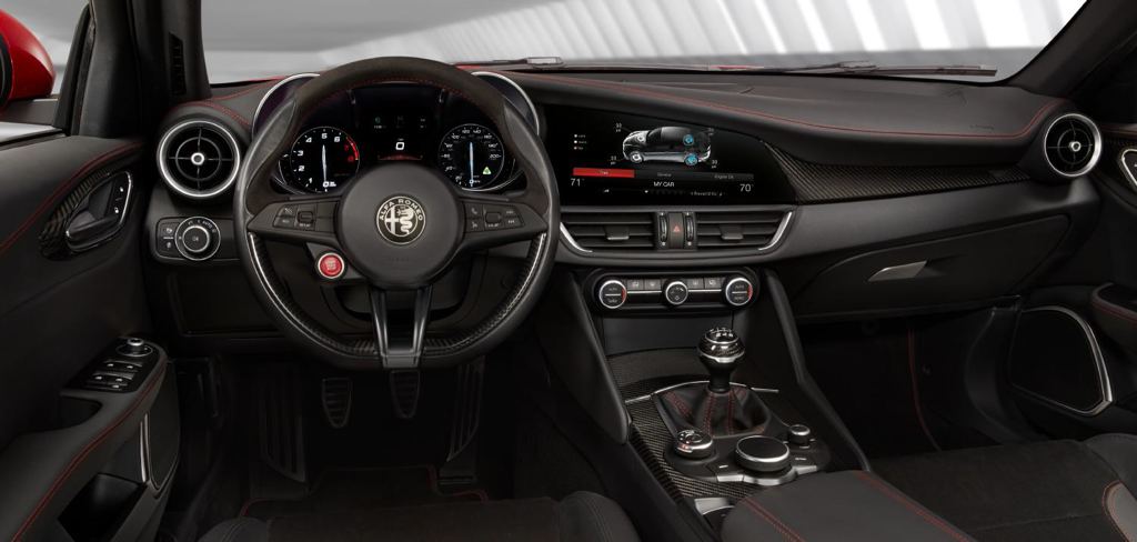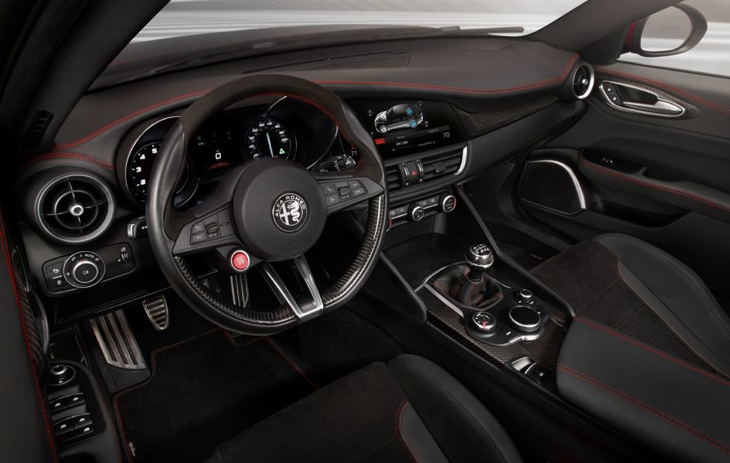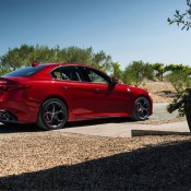 As for the entry-level Giulia, if you can call it that, the American-spec model comes with a 276 horsepower all-aluminum four-cylinder turbo engine with direct injection, fuel-saving and emission-reducing MultiAir2 technology. Rear-wheel-drive is standard on all models, but all-wheel-drive will be available on select models. Suspension-wise, you get double wishbone front suspension with semi-virtual steering axis and Alfa-link rear axle design with vertical rod.