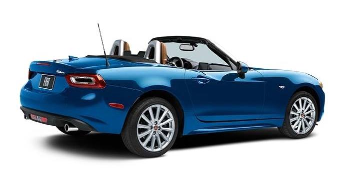 The 2017 Fiat 124 Spider is inspired in its design by the original Fiat 124 from the sixties, as clearly shown by the similarities between the two around the headlights and front grilles. The Fiat appears bulkier and overall manlier than the Mazda upon which it is based, thanks to features like the muscular bonnet and silver windscreen frame.