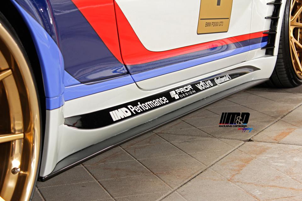 This fake BMW 650i GT3 comes wrapped fully in the ///M racing colors which makes it a bit hard to discern the styling kit. But it does have one – a good one. It is Prior Design’s wide body PD6XX styling package consisting of front bumper replacement, revised rear bumper with integrated diffusor and tailpipes, new front fenders wide body edition, rear widening, sport engine cover, rear trunk spoiler and custom side skirts.