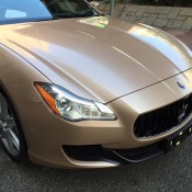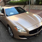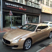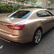 This QP was originally grey, a color that the owner evidently found a bit too dull and wearisome after a while. So he sent his high-end Italian super saloon to Impressive Wrap in Hong Kong, where they came up with this rather lovely gloss metallic champagne wrap for the car. It is not the sort of color you would usually associate with a Maser – since it is somewhere between bronze and gold and therefore fairly ostentatious – but when it works, it works.