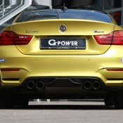 At any rate, this Austin Yellow G-Power BMW M4 is equipped with the tuner’s Bi-Tronik 2 V2 ECU remap tailored to work with a custom titanium exhaust system. The exhaust system significantly reduces back pressure thanks to custom downpipes and comes with four 90-millimeter tailpipes, optionally available in titanium or carbon fibre finish. The net result of all that is a total output of 560 hp / 412 kW with 720 Nm of torque. And the result of that is a 0-100 km/h time of 3.8 seconds and a top speed of 310 km/h.