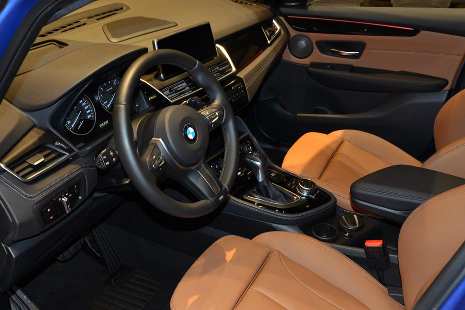 The interior of BMW 2 Series Active Tourer M Sport is a much nicer job than the outside, what with the Merino leather seats which in the case of this example are Mocha colored, the Piano Black trim pieces, and the lovely M steering wheel. You almost get the feeling this car does not deserve such a classy cabin!
