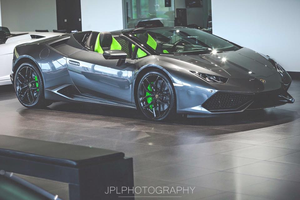 Yep, it’s yet another unique Lamborghini Huracan Spyder sitting pretty at one of the company’s main representatives around the world, this time a Grigio Estoque grey example with green interior at Lamborghini Montreal. It is one of the classiest looking examples we have seen so far.