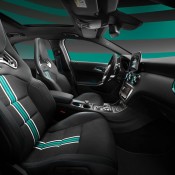 As for the interior, Mercedes A45 AMG World Champion Edition features the Dynamic Plus package with sport seats wrapped in leather and Alcantara, or DINAMICA, and styled with green stitching and piping to match the green trim pieces on the dashboard. They are almost cool enough to justify the 65,402 EUR starting price of this car.