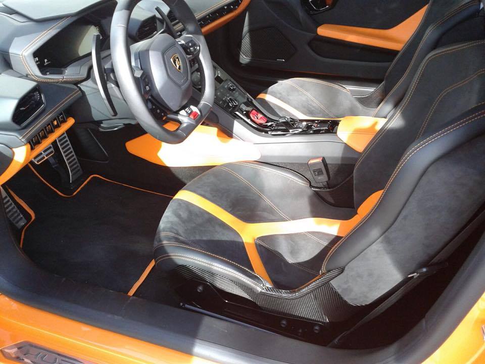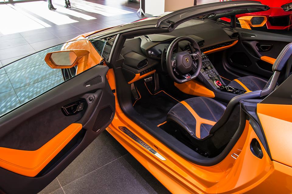 The majority of the Lamborghini Huracan Spyder models we have shown you so far have been baby blue, with the exception of the most recent example which was a lovely shade of Girigio grey. The only orange Spyder we saw was a while back in Dusseldorf. But now the car has made an appearance at Lamborghini Madrid, offering a chance for us to look at it to our heart’s content.