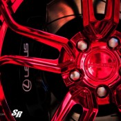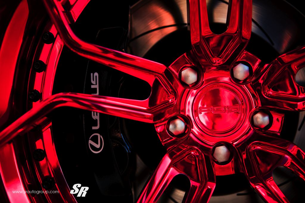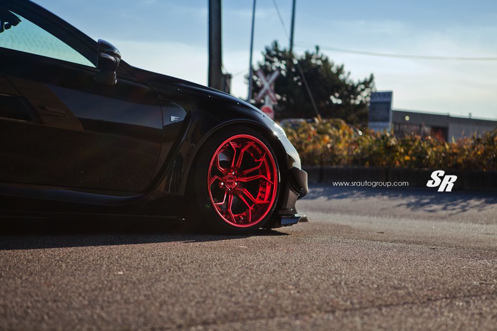 But no proper wide body kit is complete without custom suspension and wheels. As such, the Rocket Bunny Lexus RC F gets RSR fully adjustable coilovers and a set of super special PUR LX10.V3 wheels in sizes 20×10.5 front and 20×12 inch rear, finished in Gloss Davinci Red. Bit too much? Maybe, but they make a nice contrast with the all-black theme that dominates the rest of the car. This little bunny also features Apexi cat back exhaust system.