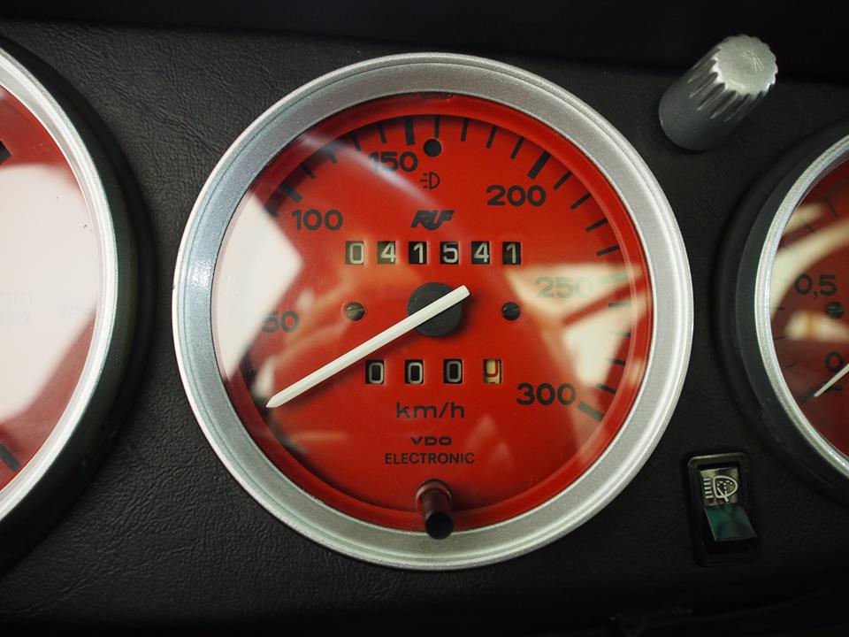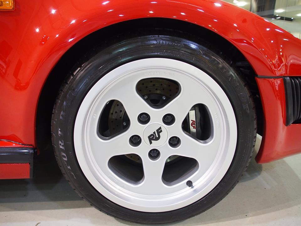 RUF Porsche 930 has undergone a major engine upgrade, with its flat-six motor upped in capacity from 3.3 to 3.4 liter and equipped with Mahle Pistons and connecting rods and 935 type camshafts, larger KKK K27 turbo, free flowing intercooler, new intake manifold and exhaust, and a larger oil cooler. The car is also fitted with a RUF aero kit and a set of RUF single piece forged wheels in sizes 9×17 and 10×17 on Dunlop SD Sport P40 tires front and rear.