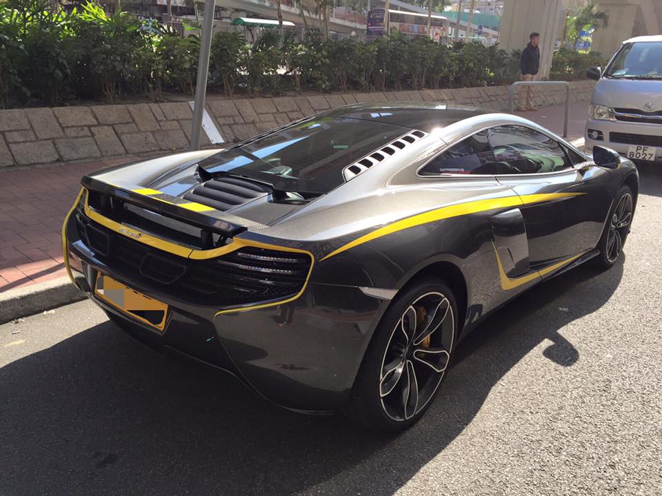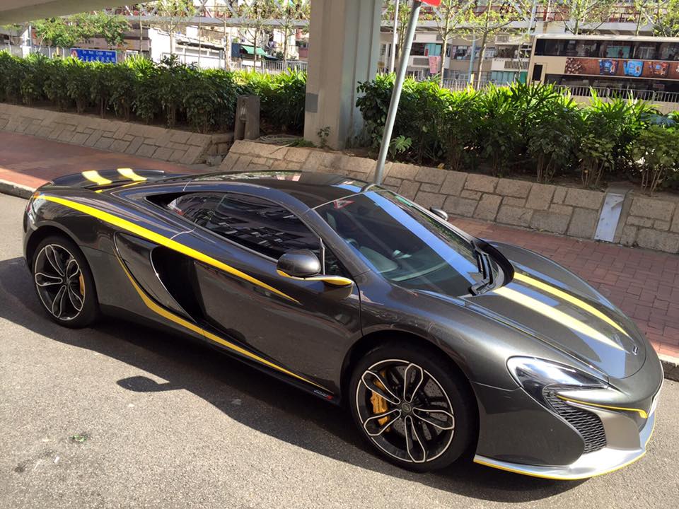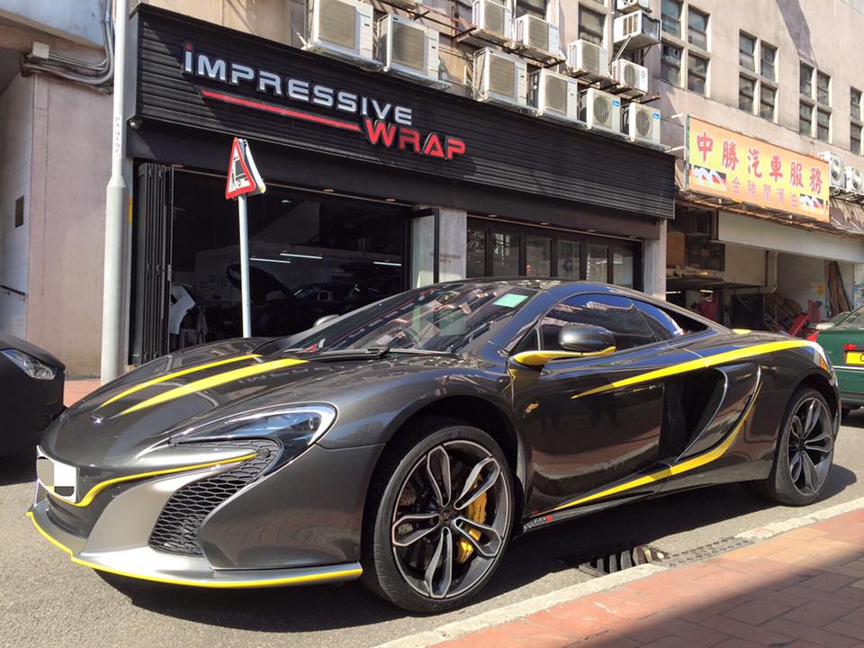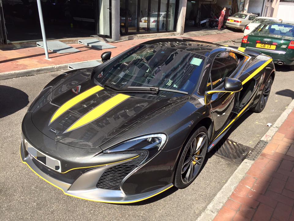 This custom McLaren 650S shows what can be done with a couple of nice and subtle wrap and an interesting livery design. This car was done by Impressive Wrap Hong Kong who first wrapped the Sarthe Grey car in protective film, and then garnished it with gloss yellow stripes and accents. Apart from the GT3-inspired stripes down the middle of the car, yellow is also used to garnish the front spoiler, mirror arms, side sills and the hips of the car, as well as the rear apron and the spoiler.