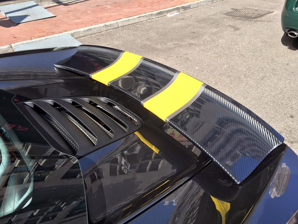 In addition to the yellow stuff, this custom McLaren 650S coupe also features 4D Carbon side scoops and rear wing. As mentioned, these carbon look parts are very subtle and to an uninterested eye look pretty much stock. With a car like the 650S you don’t want to mess too much with the styling, not just because you could well end up ruining the thing, but also because you don’t want to mess up the aerodynamic properties of the car.