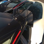 This is not the only color combo available for the Lamborghini Aventador Pirelli Edition. There are two-tone color scheme in two options. The first is matte black for the roof, the pillars, the rearview mirrors, the engine hood, and the front, rear, side and moving air intakes, in contrast with six glossy finishes for the rest of the body (Giallo Spica, Rosso Mars, Bianco Isis, Nero Aldebaran, Grigio Liqueo, and Grigio Ater). The second option is glossy black for the upper parts of the car and the air intakes, in contrast with four matte finishes for the rest of the exterior (Bianco Canopus, Nero Nemesis, Grigio Adamas, and Grigio Titans).
