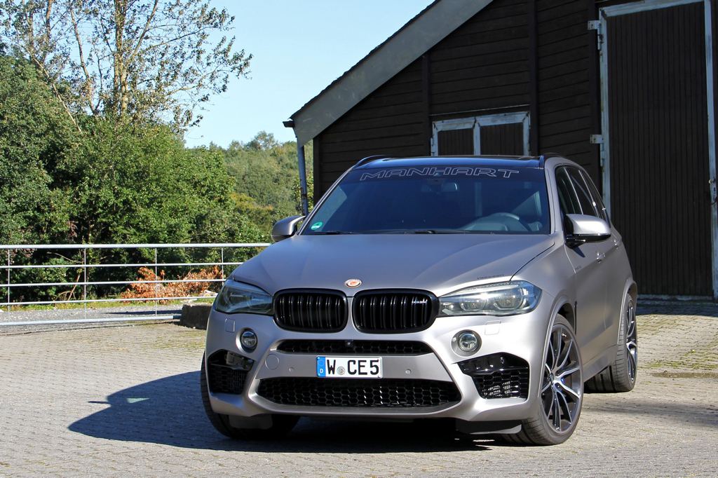 Starting with the base engine which is a 4.4 liter bi-turbo unit developing 570 horsepower and 750 Nm of torque, the tuner offers a performance upgrade kit that includes the MHtronik Control Unit with 656 hp and 861Nm, and a custom exhaust system with catless downpipes, 300 cell HJS sport catalysts, and 100mm tailpipes. With that the output of Manhart BMW X5M surges to 700 horsepower. For those who still want more, the tuner can do another software upgrade with up to 800 hp.