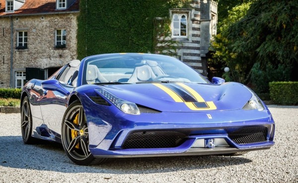 Now, because of the unique paint work/stripe combination and the fact that pretty much each limited edition Ferrari that leaves the factory is highly personalized, one would imagine that Interceptor thing is something of particular significance to this car’s previous owner and not a Ferrari thing, as it were. This is a second-hand Interceptor Ferrari 458 Speciale A with 16,000 km on the clock, on sale at an undisclosed price at Hoefnagels.