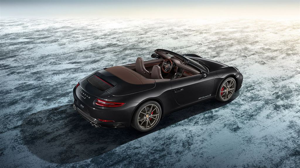 For the 2016 Porsche 991 Exclusive Carrera the treatment includes, on the outside, black headlight washer and LED headlight unit, 20-inch Carrera Sport wheels in high-gloss black, SportDesign mirror caps, model designation on the doors, painted side skirts, privacy glass, black tailpipes and black PORSCHE logo at the back.