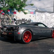 Pagani Huayra Volcan is a car Mr David has ordered for himself, so it’s designed to his personal specifications. The body is almost entirely naked carbon fiber, which in true Pagani fashion has matching carbon weaves, garnished with subtle red accents and stripes and a set of not-so-subtle candy apple red wheels. The same combination is found inside the cabin, although here red is the dominant color.