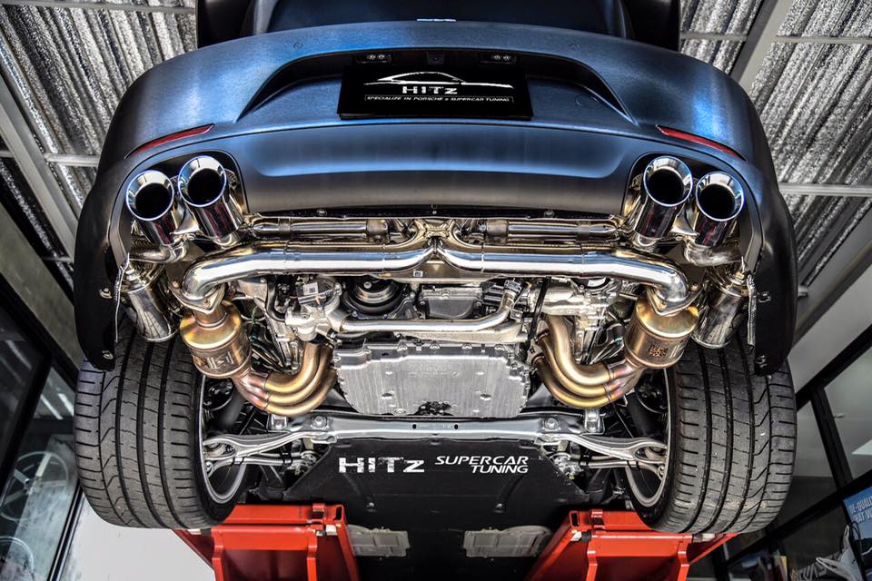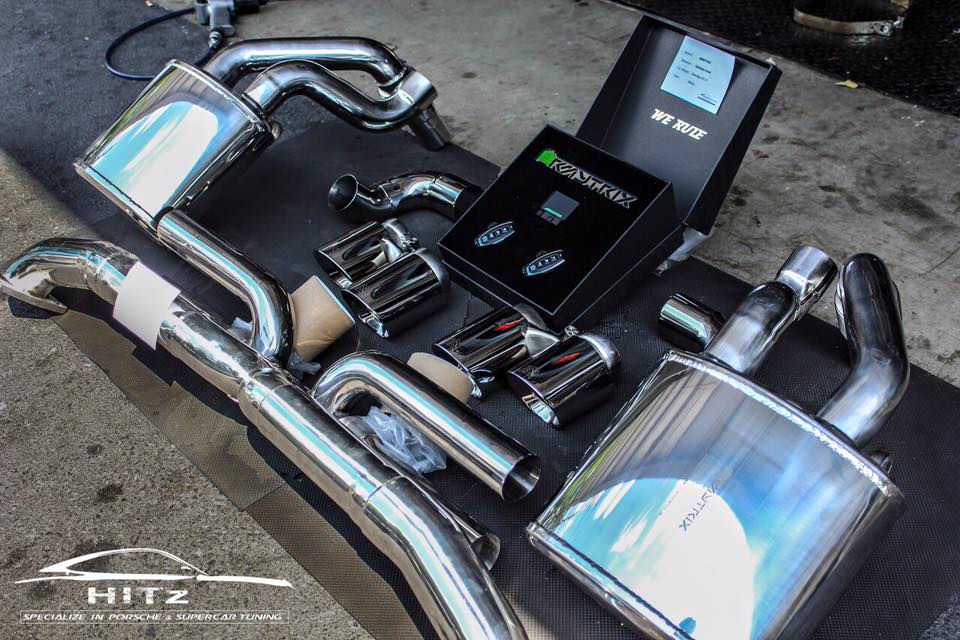 The system Hitzproject, in partnership with Armytrix Thailand, has picked for the Porsche 991 Black Edition is a stainless steel set complete with downpipes, mufflers with sport cats, and blacked-out, branded tailpipes. What’s more, the system has the valve control feature with remote control, so the owner can choose what kind of volume he or she wants at any given moment.