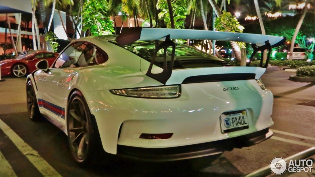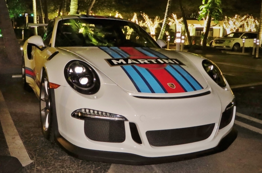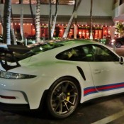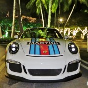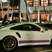Porsche first brought the Martini racing livery to the world of road cars for the 918 Spyder. But it proved such as popular option, they have extended it to the GT3 models. We’ve seen a fair few 991 GT3s in these colors, but I think I’m right in saying this is the first Porsche 991 GT3 RS Martini spotted in the wild.