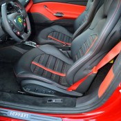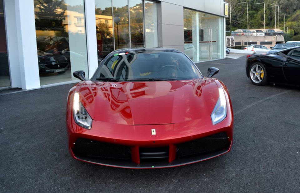 The same red and black theme continues inside the cabin where you find sports seats upholstered in black and garnished with red stitching, piping, and seat belts, a two-tone dashboard with contrast stitching, and red/black door panels and handles. It might seem like a a bit of an exaggeration, but the unique appearance of the Rosso Maranello Ferrari 488 GTB makes the driving experience of this 670 horsepower turbo super car a lot sweeter than a basic white or grey model.