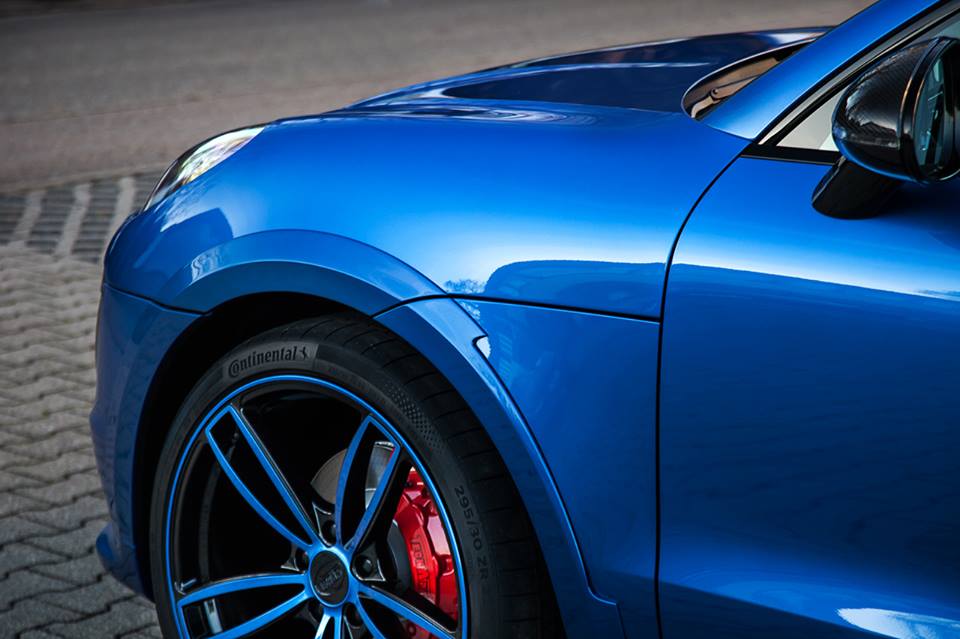You are probably familiar with the ingredients of Techart Porsche Macan styling kit from our previous features on this product. The package includes a custom front spoiler added to the stock front bumper, flared wheel arches on the front and rear, custom skirts, a special rear diffuser, and the roof and tailgate spoiler combo. You can also order new mufflers if you want with some man-sized tailpipes to boot.