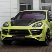 The ingredients of TopCar Porsche Cayenne GTS Vantage 2 styling package include fully custom front bumper featuring distinctive grilles and intakes complete with spoiler lip and LED lights, sport vented bonnet in exposed carbon, front and rear fender extensions with optional front wing modifications, side skirts, carbon mirrors, revised rear bumper with new diffuser and tailpipes and optional tailgate wing.