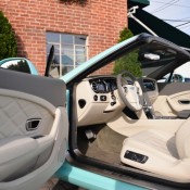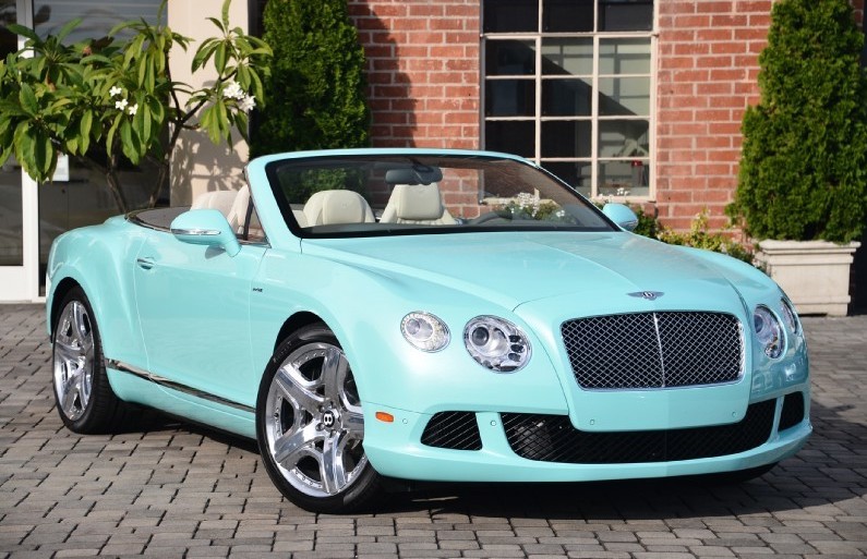 The 2015 Celeste Blue Bentley Continental GTC Convertible is one of those cars you either love or hate. The color is eye-catching and very interesting, but not everybody is going to like it. For instance, if you are a muscular gang member with tattoos on your neck, you can’t drive around in an open-top car painted in such a lovely color. On the other hand, if you are dentist’s wife, this thing is perfect for you.