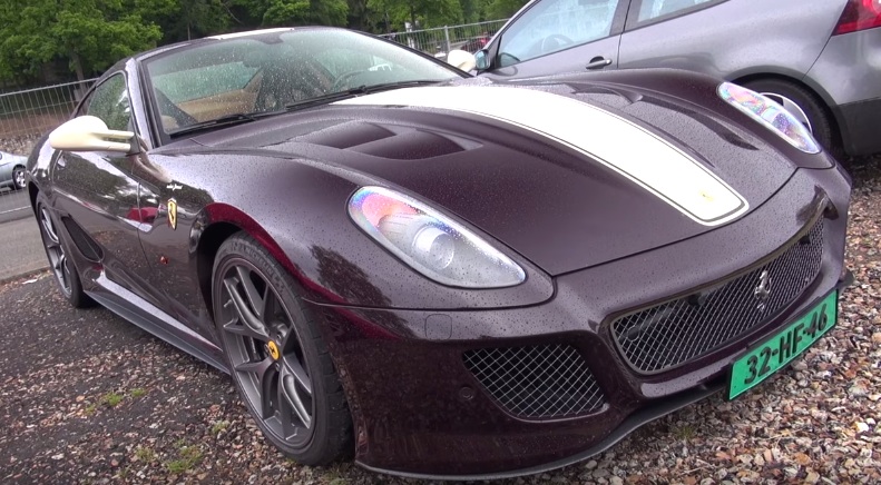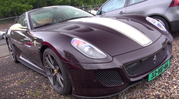 Beside the sort of matt purple paint job, the unique Ferrari 599 GTO Rosso Vinaccia features Bianco Avus stripes and mirrors, and gunmetal grey wheels. The result is quite an eye candy, as you can see in this walk-around and action video:
