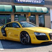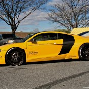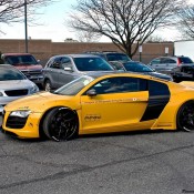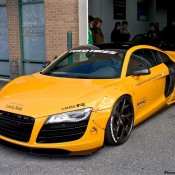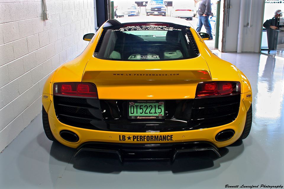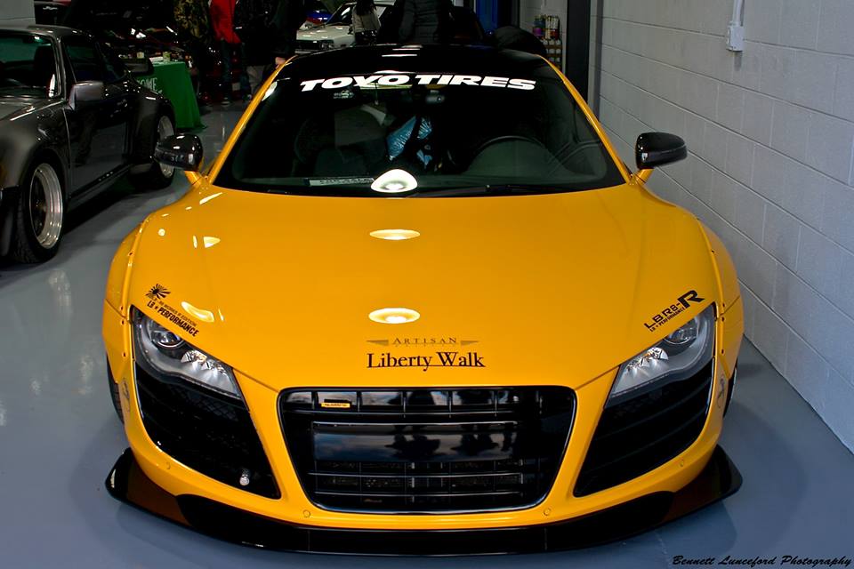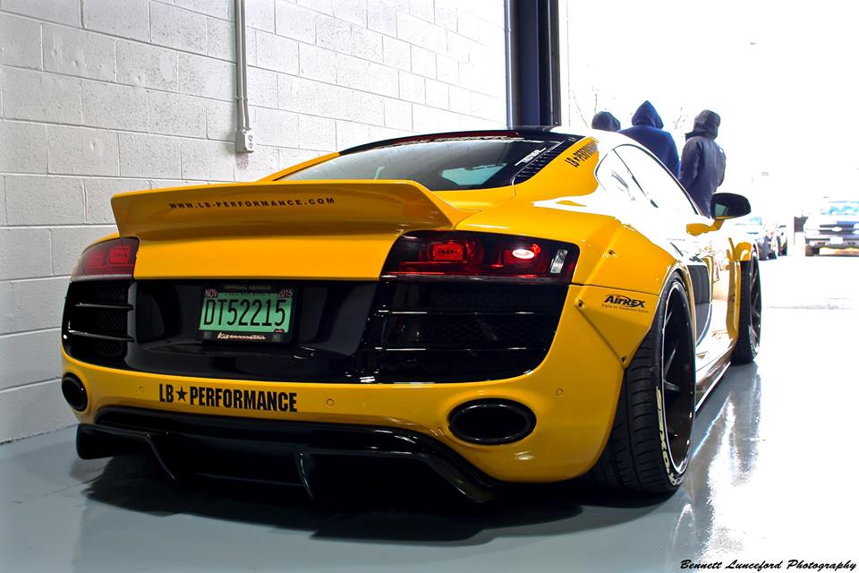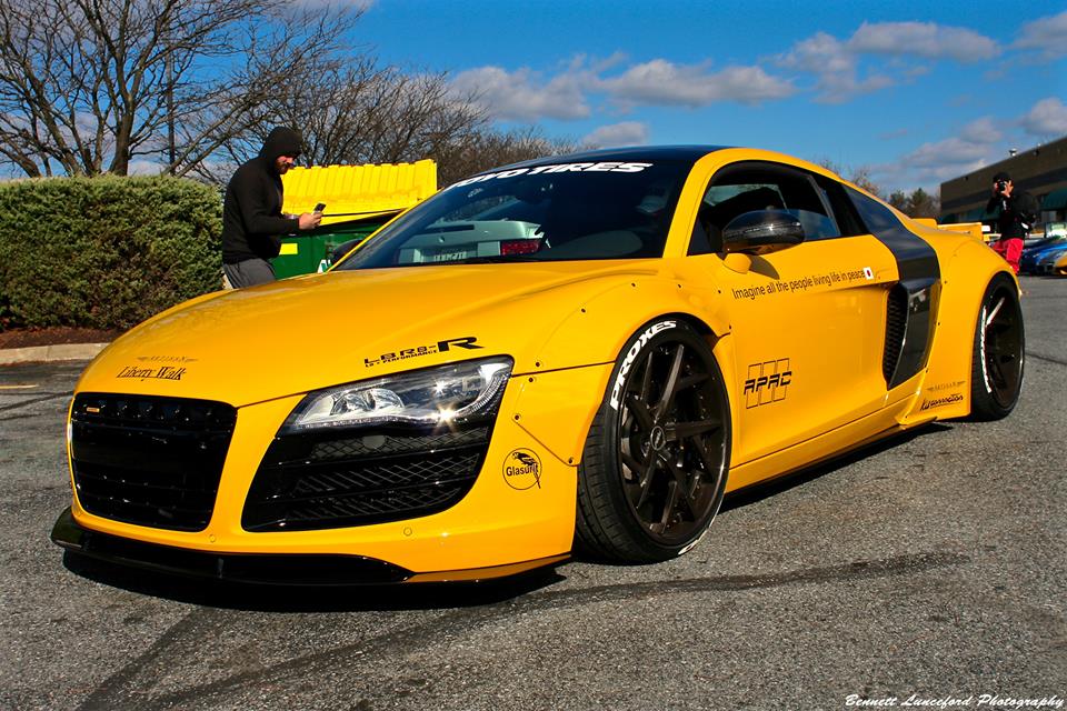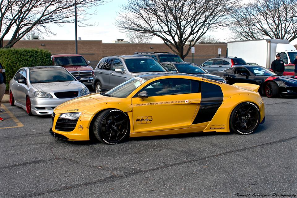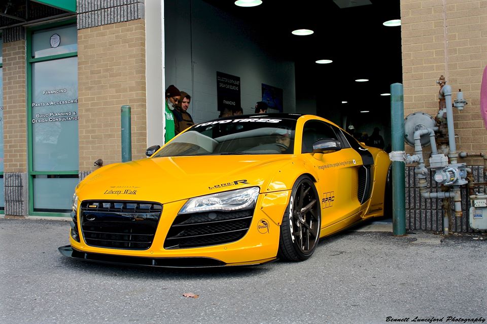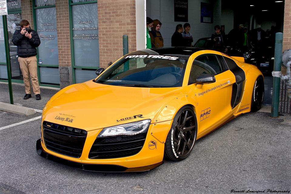 Following its official debut at the 2015 SEMA show, the yellow Liberty Walk Audi R8 is now evidently on a tour of the United States, visiting various car shows and shop openings. The car was recently spotted at the grand opening of Performance Auto Gallery in Maryland.