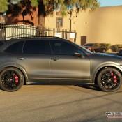 Satin Pearl Nero is the fancy name the guys at Impressive Wrap have given to the matte black color they have wrapped this Vorsteiner Porsche Cayenne 958 in. It’s a custom job, this Cayenne, featuring aero parts from the American tuner and an Innotech exhaust system.